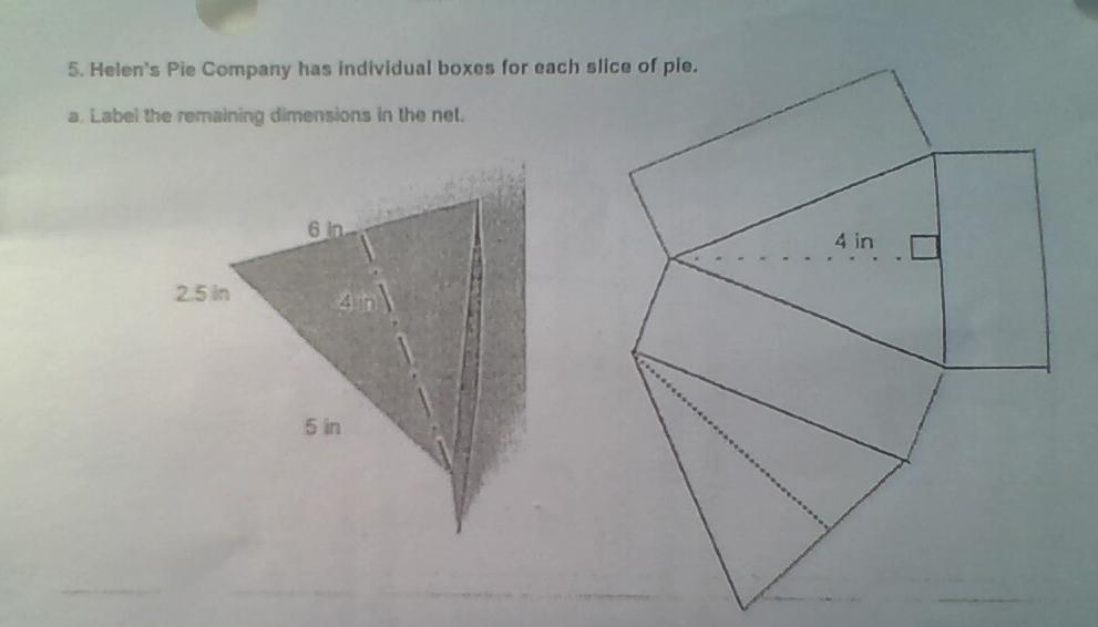 The picture attached is the answer for part A. You use the dimensions you already know from the first picture to fill in the net of the slice of pie.