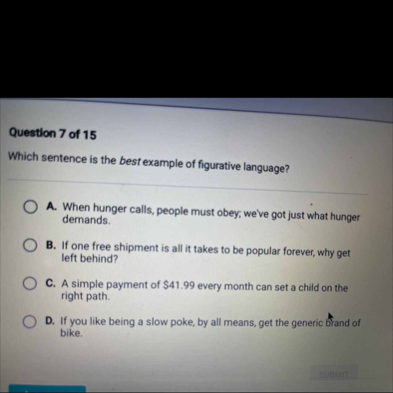 In my opinion, the correct answer is <span>C) "Could frame thy fearful symmetry". In the other examples, the alliterated consonants are plosives (B, D, T). Whereas they provide rhythm and chantlike experience, they are not as mystical as the "F" that is being alliterated in the C. line.</span>