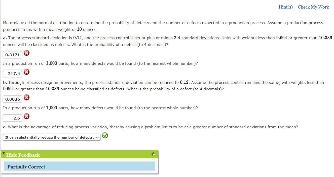 1. a) 0.3174 = 31.74% probability of a defect