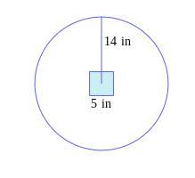 region. The radius of the dartboard is 14in, and each side of the shaded region is 5in. Use the value 3.14 for π. Round your answer to the nearest hundredth.