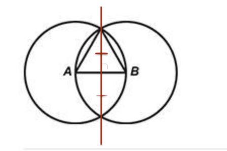 In general to construct a perpendicular bisector after we drew the two circles we have to ...draw a straight line trough the points where the two circles intersect and that is our perpendicular bisector of AB.