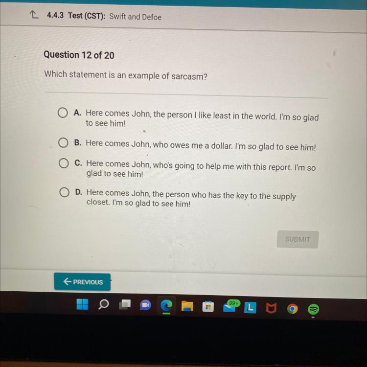 Which statement is an example of sarcasm?