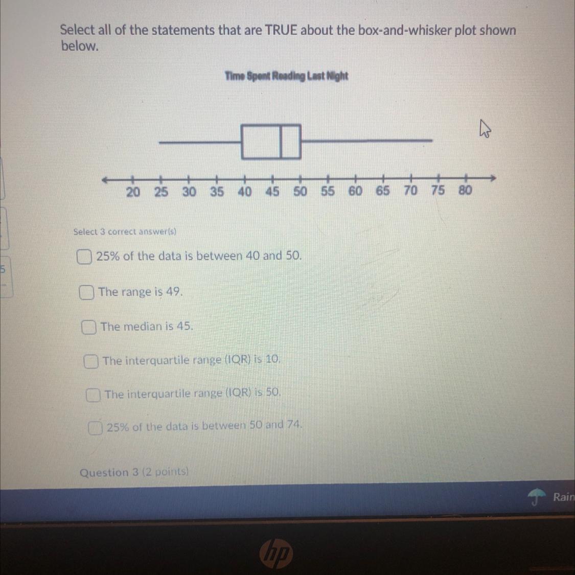 20) 100% - 15% - 10% = 75%