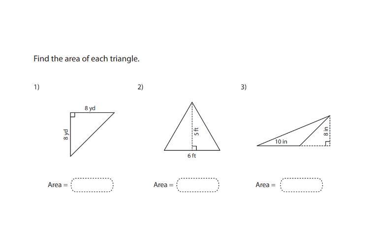 Find the area of each triangle