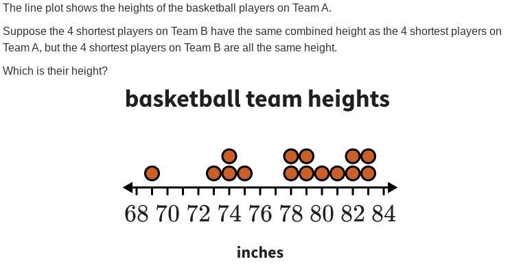 Answer the question in the picture! The answers are A 54 inches B 70 3/4 inches C 72 1/2 inches or D 73 1/4 inches