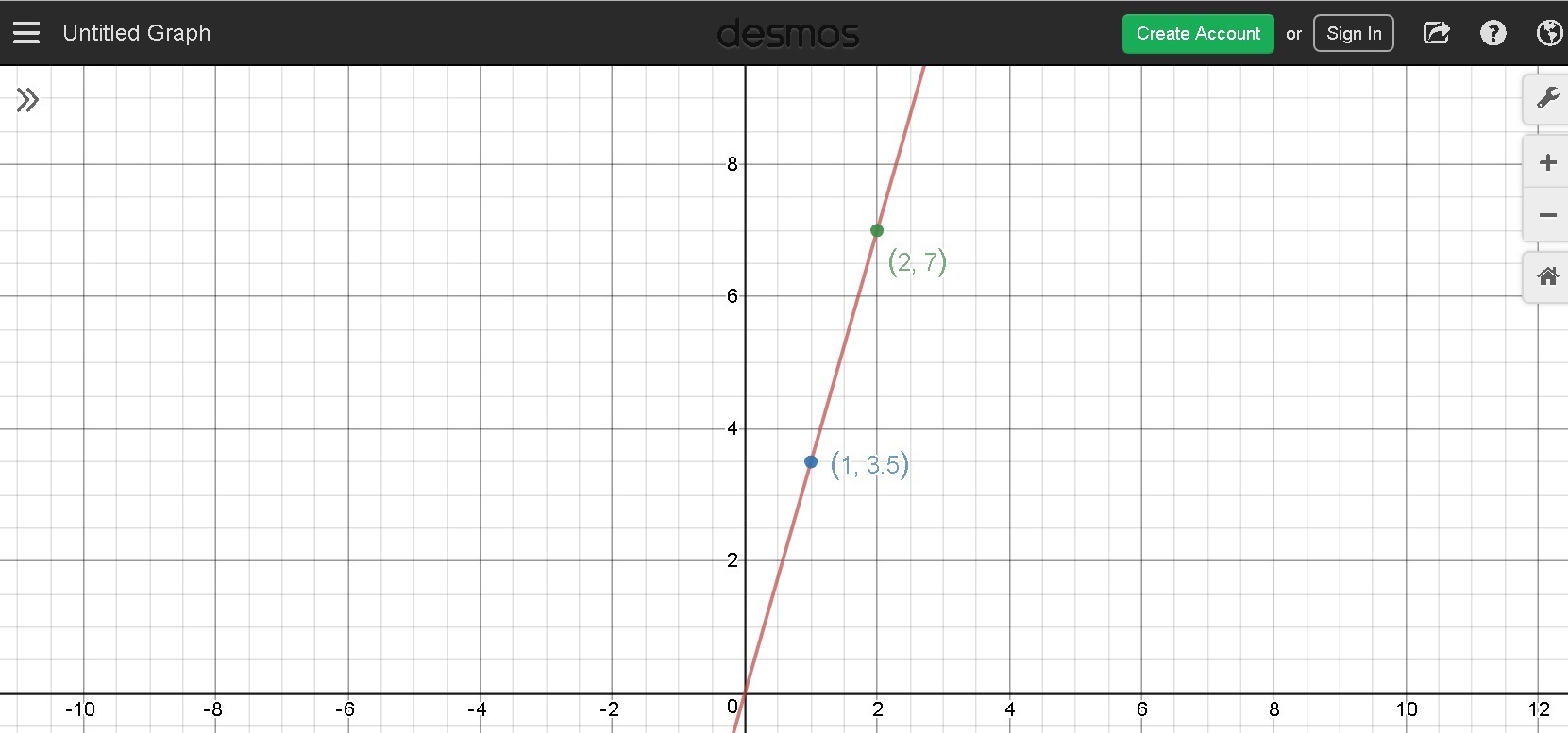 It does, the points shown on the line would be part of y=3.5x