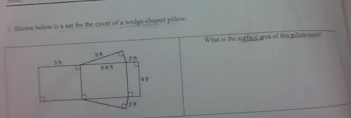 (Be careful here, as it is easy to use the wrong length for the base of the triangle. The base and height of the triangle are perpendicular, so at right angles to each other. Therefore, the base is 5ft and the height is 2ft)
