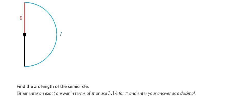What we want to find here is the arc length of 1/2 of a circle, we'll start by finding the of the circle.