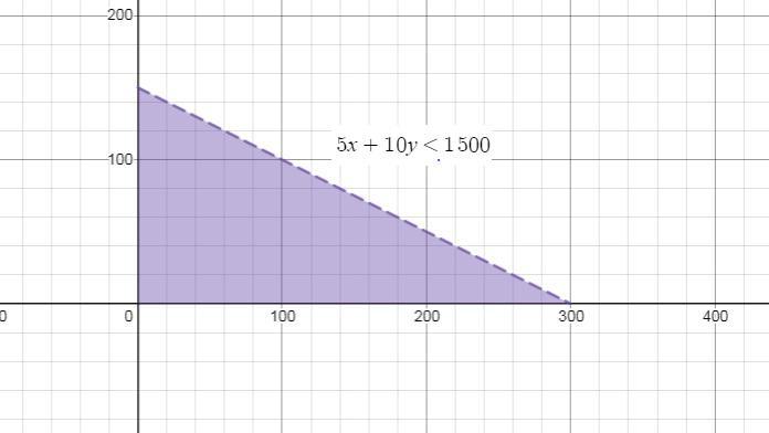 Since, the related equation of the above inequality is, 5x + 10y = 1500