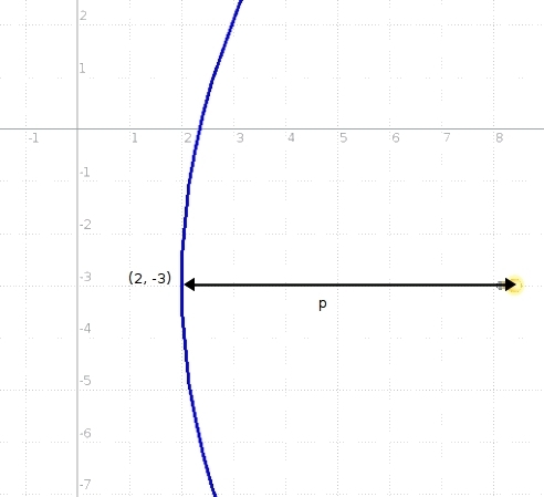 The vertex of the parabola is (3,-2) and the focus is