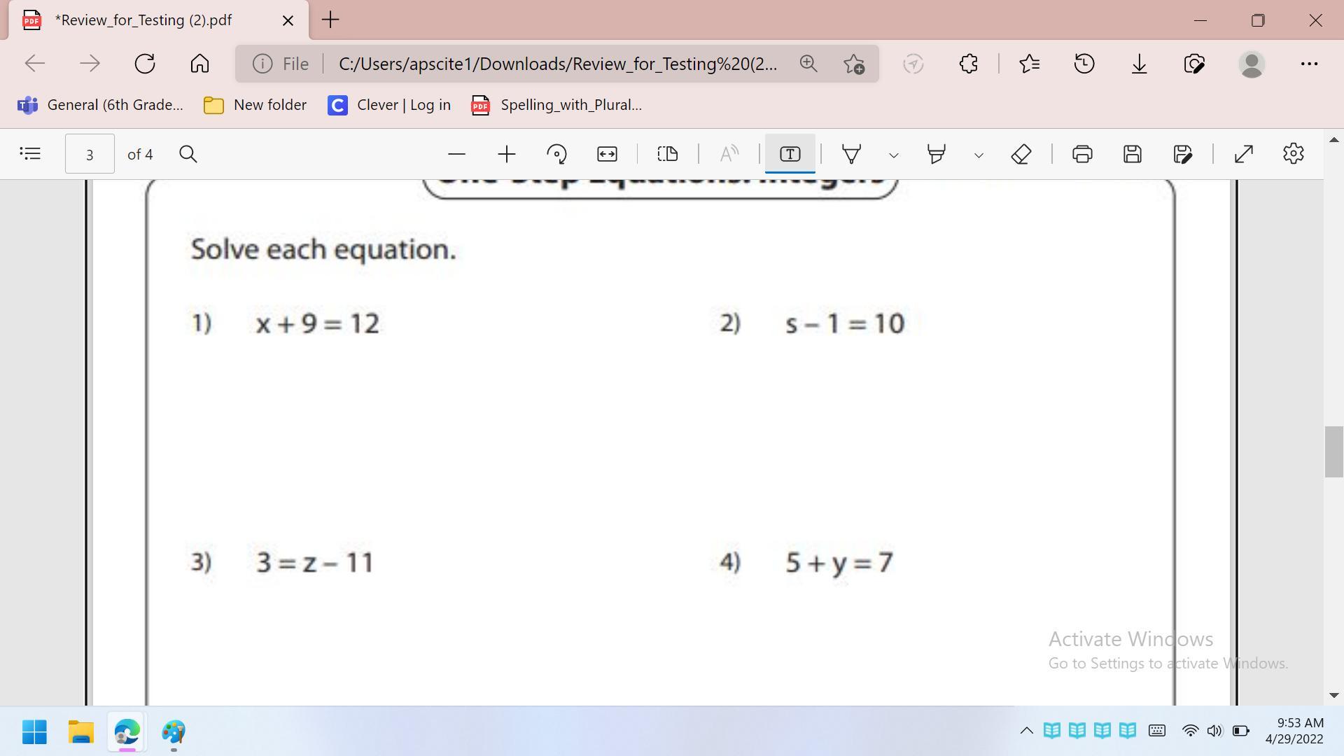 1. x + 9 = 12