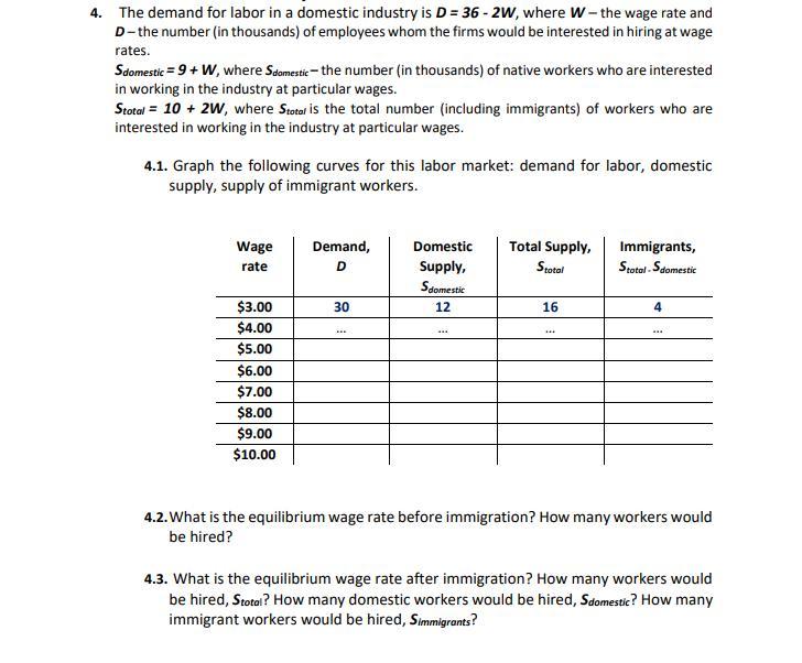 <h3>4.2: The equilibrium wage rate before immigration</h3>