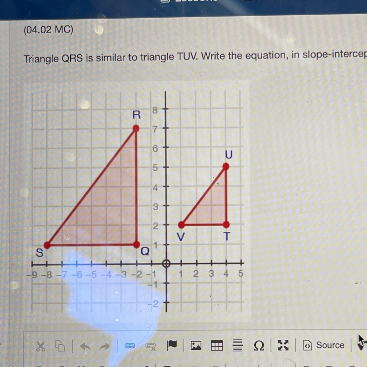 Thus, the equation in slope-intercept form for the side of triangle QRS that is parallel to UV is: y = x + 9