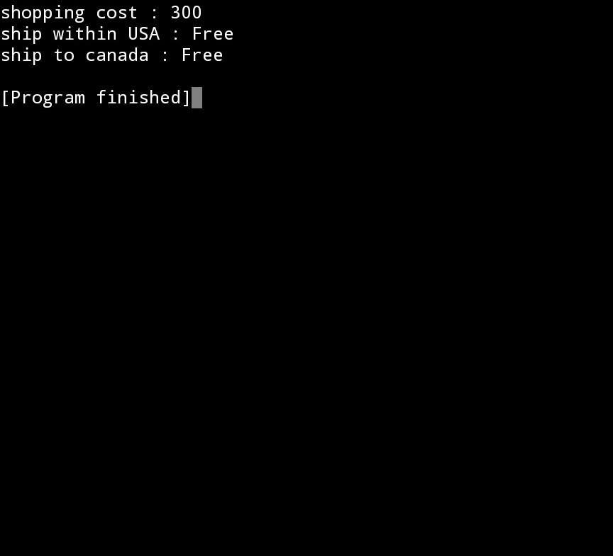 <em>#if cost of shopping is between $50 and below $100, shopping to USA is $9 and Canada $12</em>
