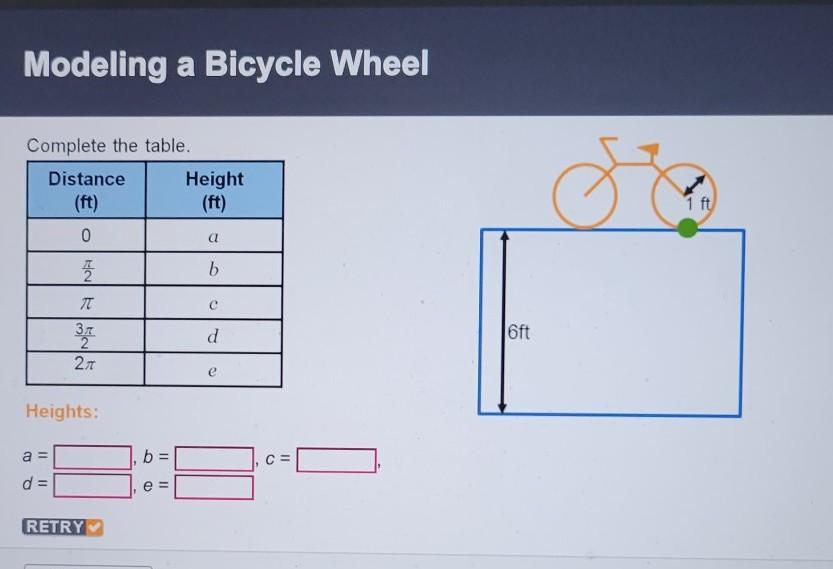 I guess it means we need to calculate the height of the green dot on the bicycle wheel that moves as the wheel turns by a certain radial distance.