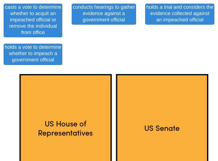 D. holds a vote to determine whether to impeach a government official.
