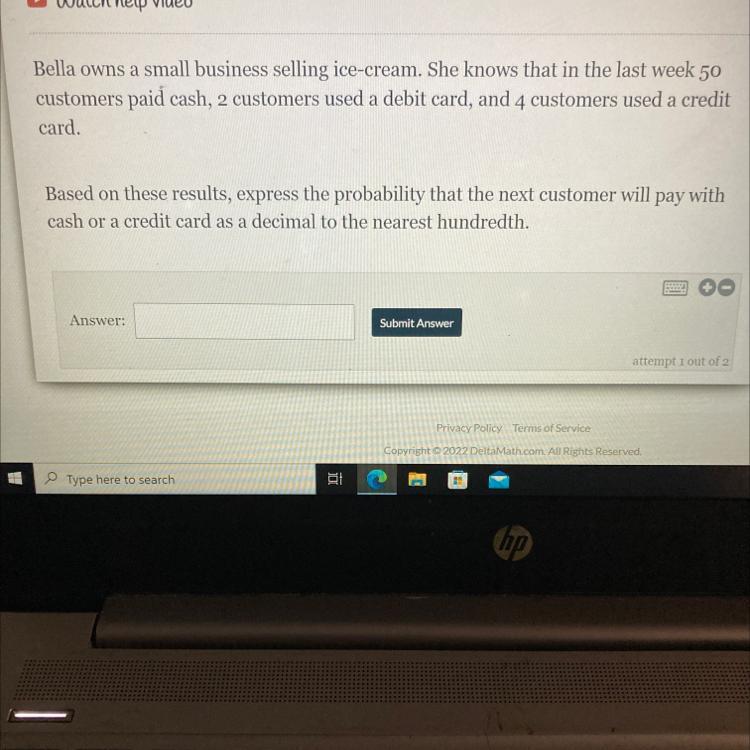 Total number of possibilities = cash, debit card, credit card = 50 + 2 + 4 = 56