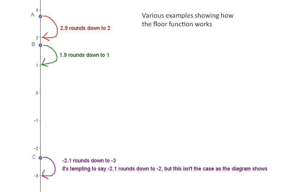 The reason why it's called the floor function is because we round down to the nearest floor.