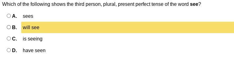 B. "will see" states that it is either first, second, or third person, future tense, and either singular or plural (eg: You will see great results!).