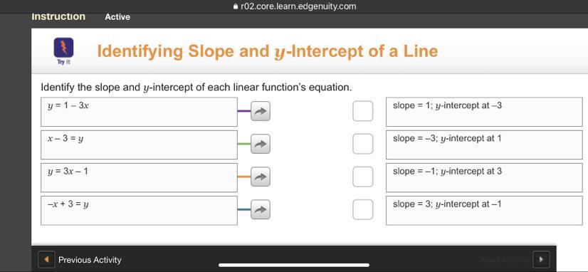 y = 1 - 3x ⇒ Slope = -3 & y-intercept = 1