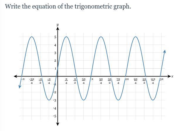 The amplitude of a sine or cosine function is half the difference of the peak values. Here, the maximum is 5 and the minimum is -3, so the amplitude is ...