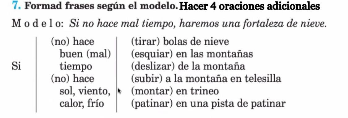 2) Si hace buen tiempo, patinamos en una pista de patinar