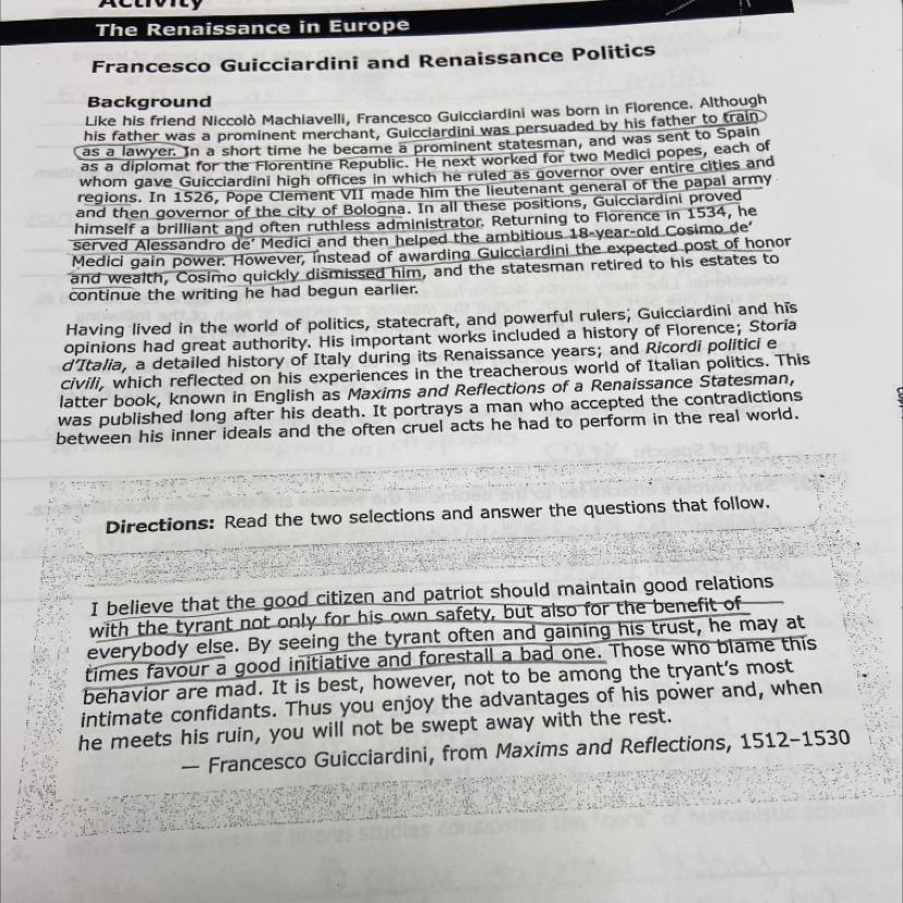 Francesco Guicciardini attitude to deal with tyrants is to have a healthy relationship for the benefit of its people and himself.