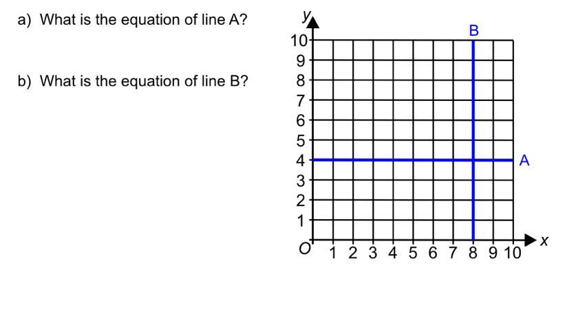 The equation of line A and line B will be y =4 and x = 8, respectively.