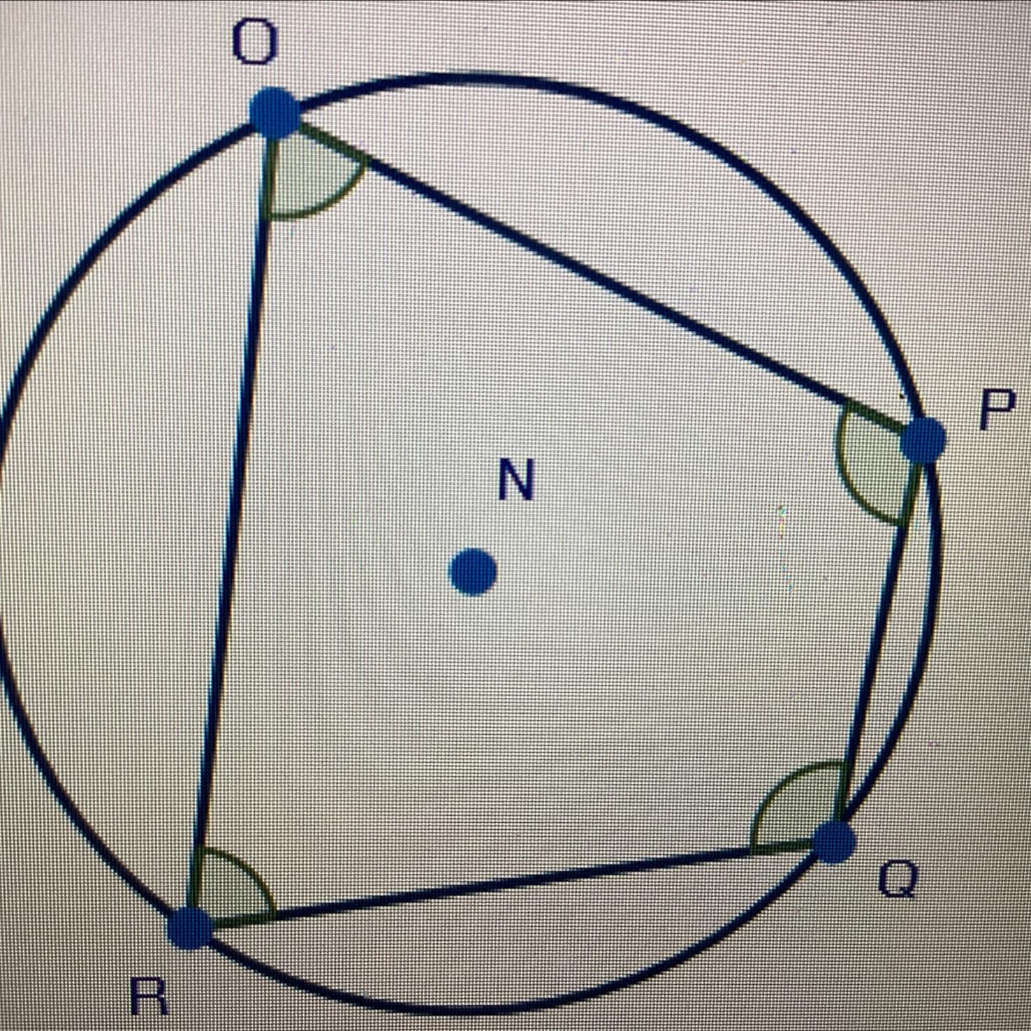 Angles P and R are opposite to each other, the arcs intercepted by these two angles make a full circle, which is 360° and converted to inscribed angles it makes 180°, since we know the inscribed angle is half the value of the intercepted arc.