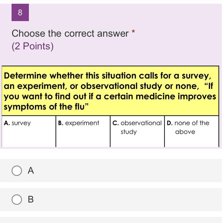 Since the researcher needs to find if a certain medicine improves the symptoms of the flu, therefore, the objective is to find out what influence a certain therapy has on the result. Hence, the given situation is an observational study.