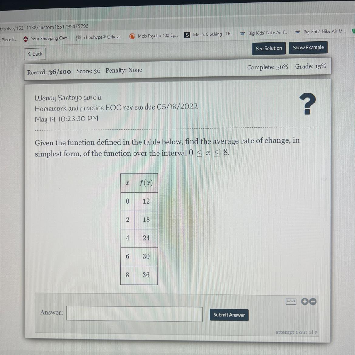 250 - 40 = 6x