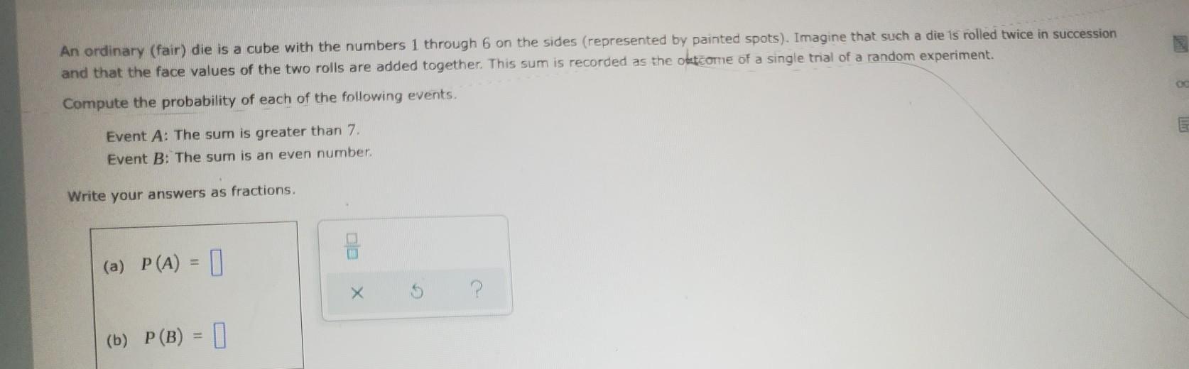 There are 26 out of 36 events where the sum is >7, thus P(A) = 15/36 = 5/12.