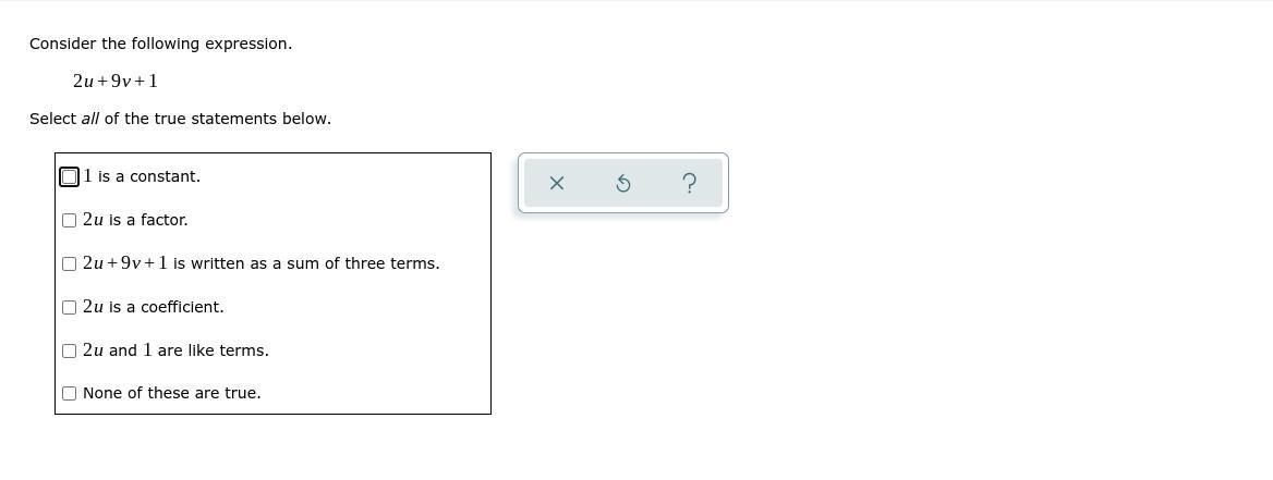 2u + 9v + 1 is the sum of three terms