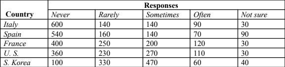 Based on the responses, the significance level, and the p-value, we can conclude that the response proportions are not the same for the countries.