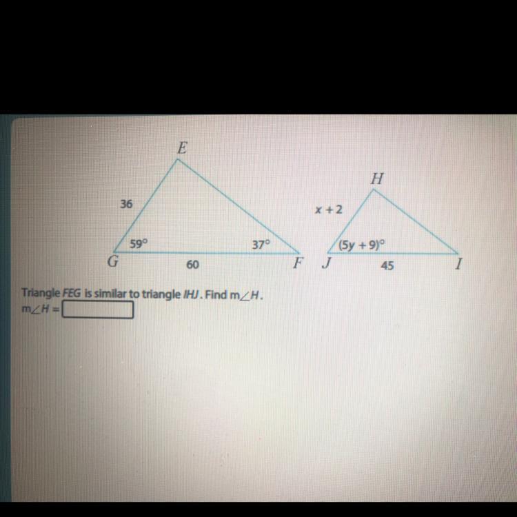 Triangle FEG is similar to triangle IHJ. Find angle H