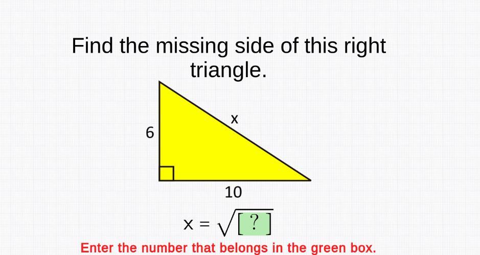 Since the provided triangle is a right triangle, we can use pythogoras theorem to determine the missing side length of the triangle.