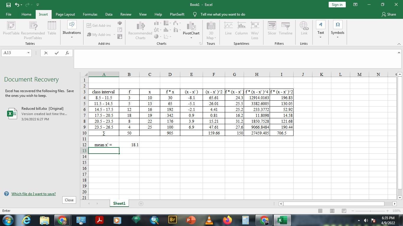 = ∑ f x / ∑ f