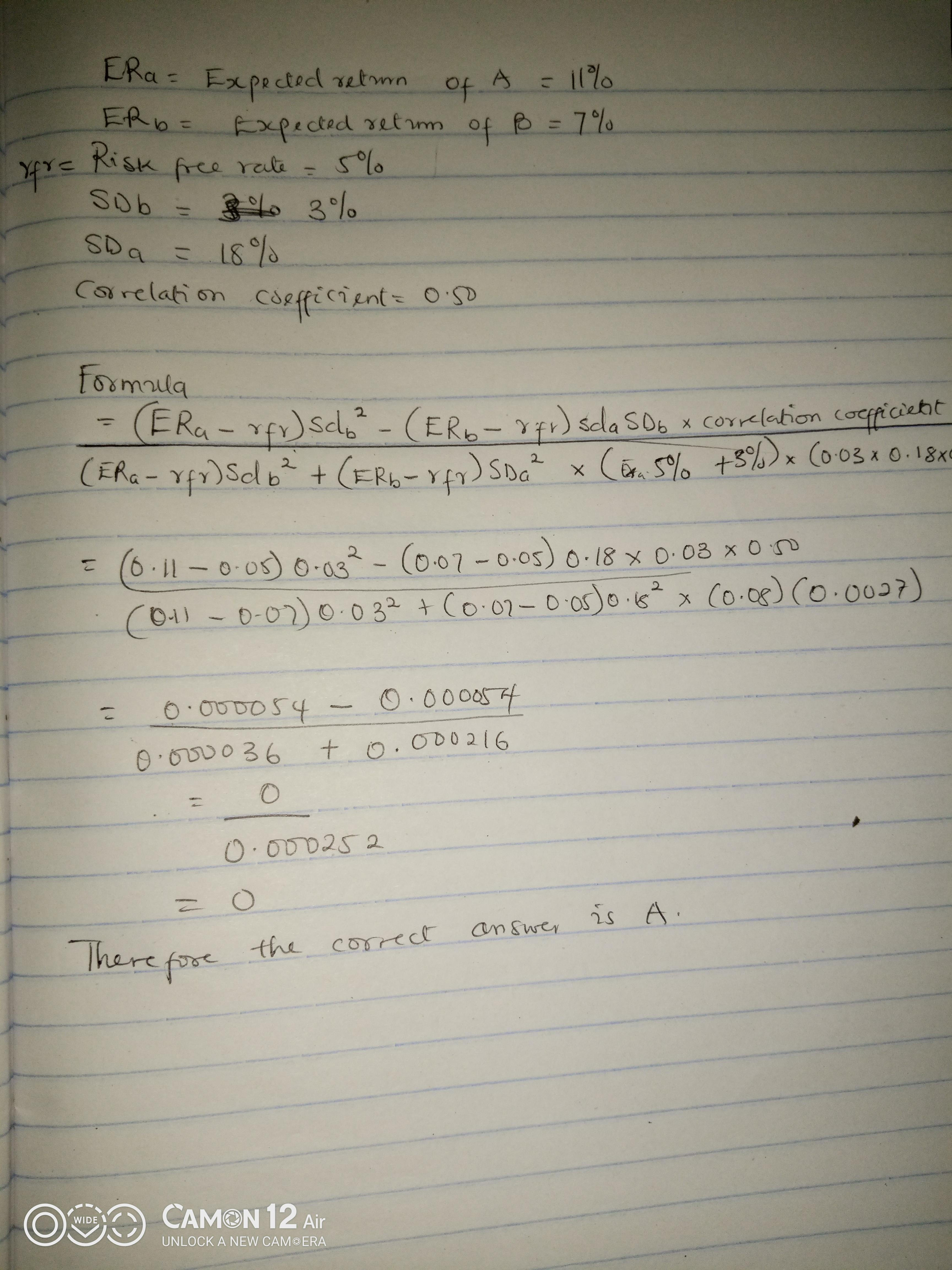 0% should be invested in stock A.