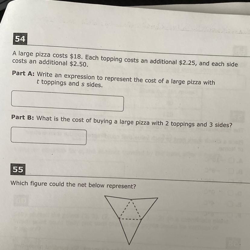 Part A: 18 + 2.25t + 2.50s