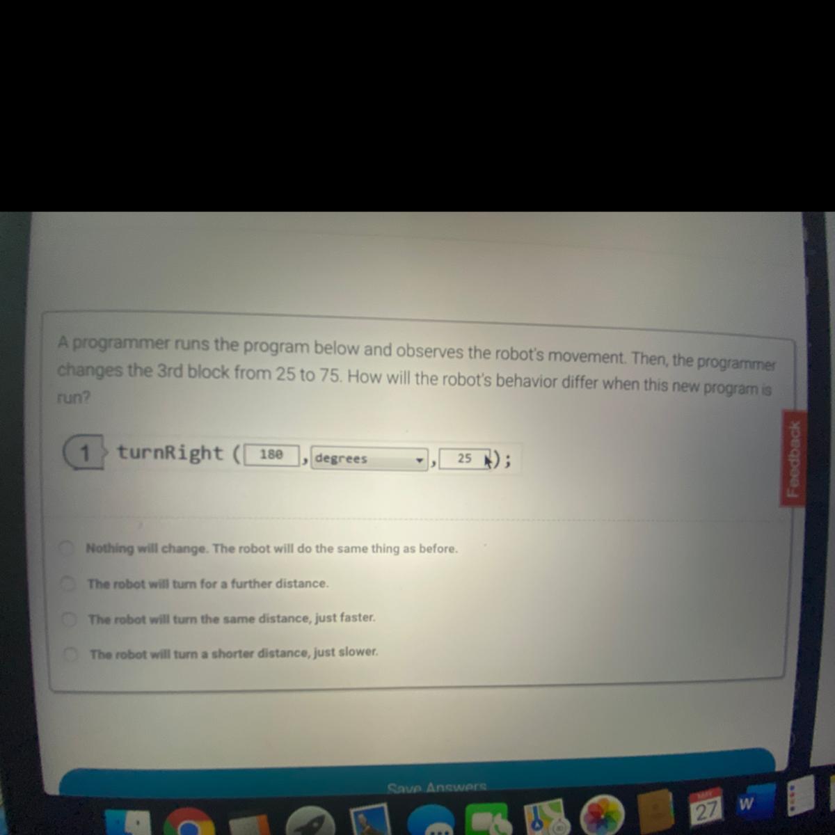 c The robot will turn the same distance, just faster