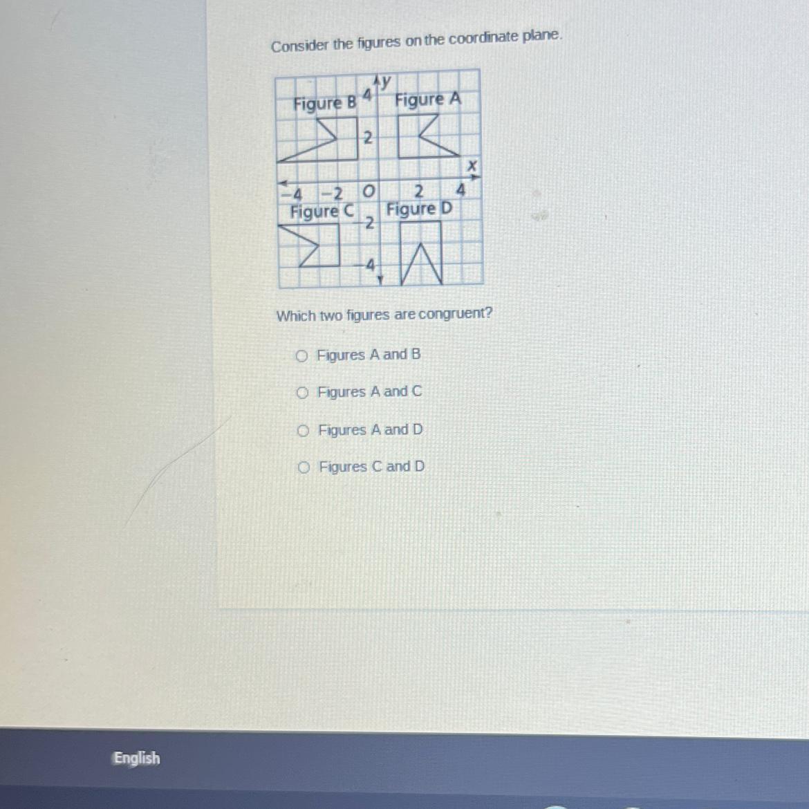 Figure D -2 W jures are congruent? SA and B SA and C A and D C and D