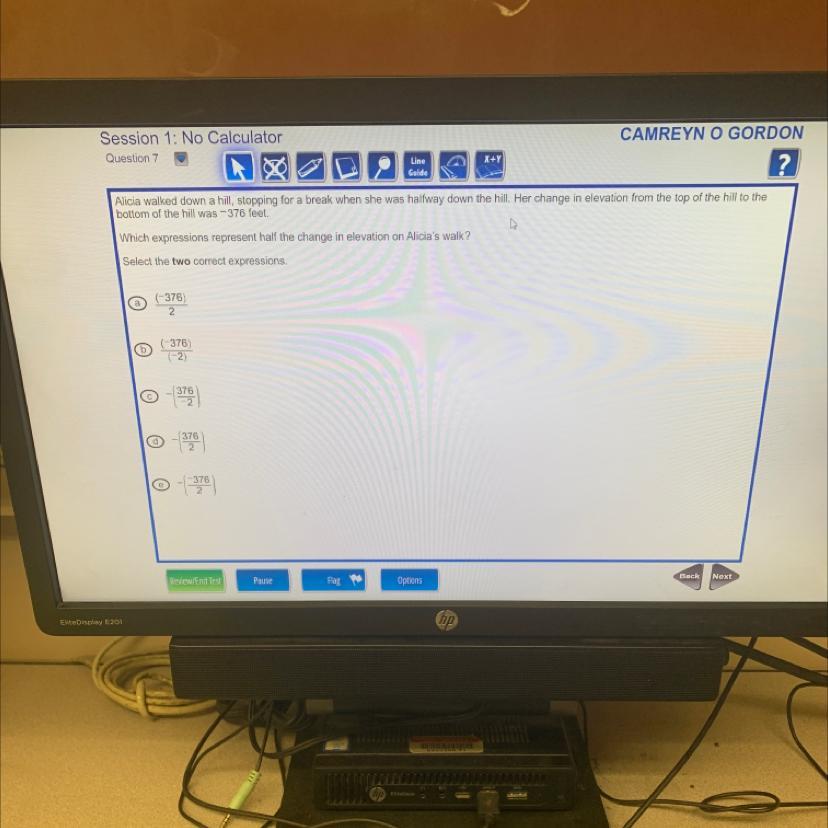 Alicia walked down a hill, stopping for a break when she was halfway down the hill. Her change in elevation from the top of the