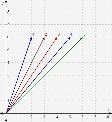 The slopes of the various lines are conveniently found using the fact that they all terminate on grid points with y=6, and they all go through the origin. Their slope is the ratio of 6 to the x-coordinate of the termination point: