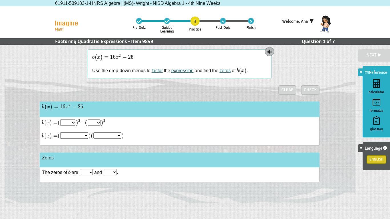 An expression is defined as a set of numbers, variables, and mathematical operations. The zeroes of the b(x) will be (5/4) and (-5/4).