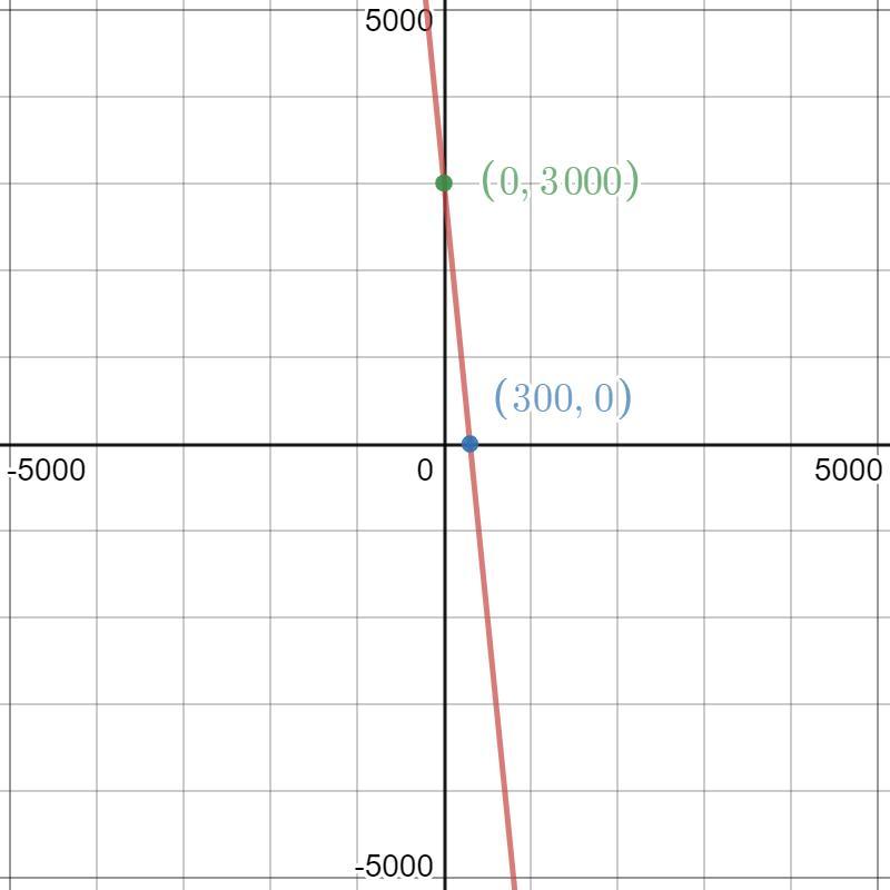 The x intercept of 300 means the skydiver lands on the ground after 300 seconds. The slope of -10 means that the skydiver falls to the ground at a rate of 10 feets per second.