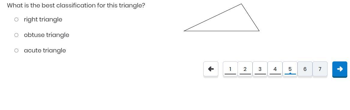 It has to be an Obtuse triangle because it has no right angle indicator. (the small square in the corner of the right angles) And it is much larger then an acute triangle.
