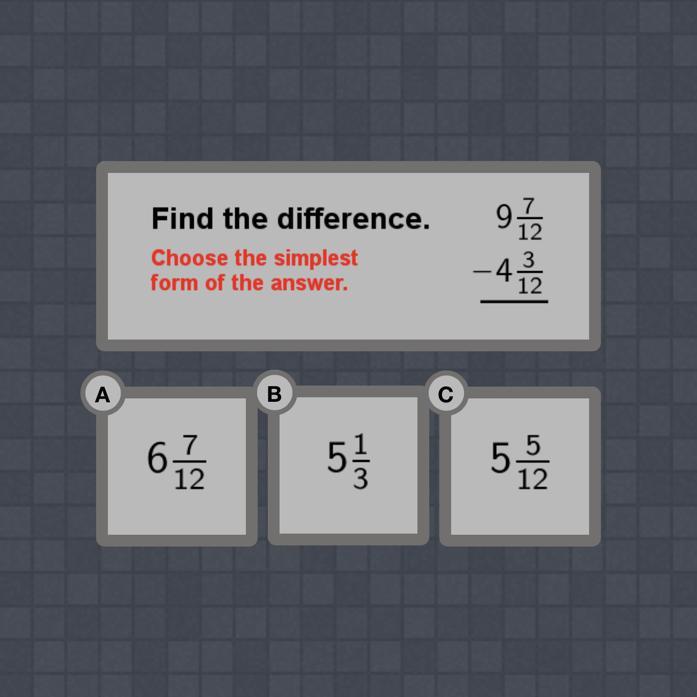 You can already mark off answer A because it has a 6 for the whole number,