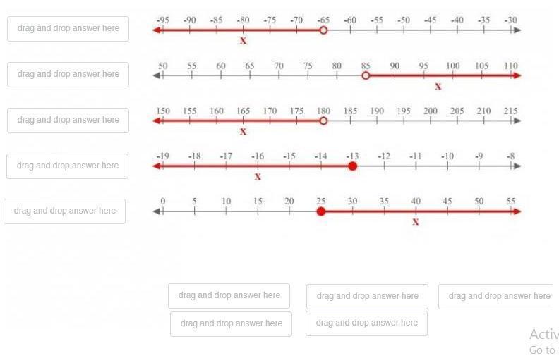 The inequalities (x≥-13)\ ,(x ≤25) ,(x < 85) ,(x > -65) ,( x > 180) in the graph.