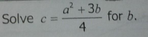 3. Divide both sides by 3 to isolate b, you get b = 4c/3 - a^2/3