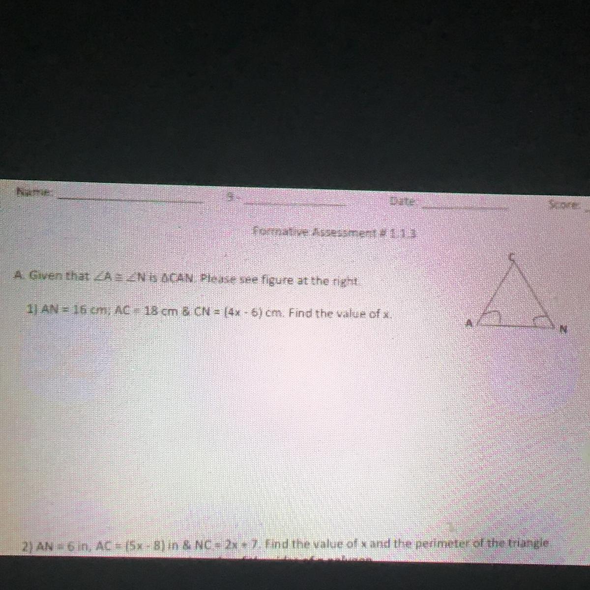 Since <A is congruent to <N, they are both an isosceles base angles. ∆CAN is an isosceles ∆.